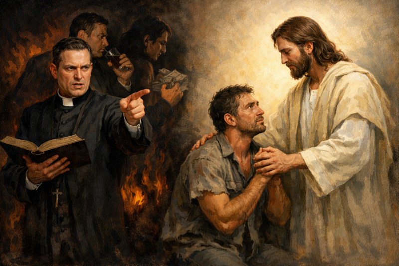 Je comprends alors que ce que Jésus refuse, ce n’est pas seulement le péché, mais l’hypocrisie qui l’accompagne. L’homme pervers, non fourbe, ne se déguise pas en juste. Il ne se présente pas comme un modèle. Il ne prend pas la place de Dieu pour juger les autres. L’hypocrite, lui, se sert du bien comme d’un masque. Il entraîne d’autres âmes dans sa confusion, il impose des règles qu’il ne vit pas, il se croit du côté de Dieu alors qu’il s’en est éloigné.