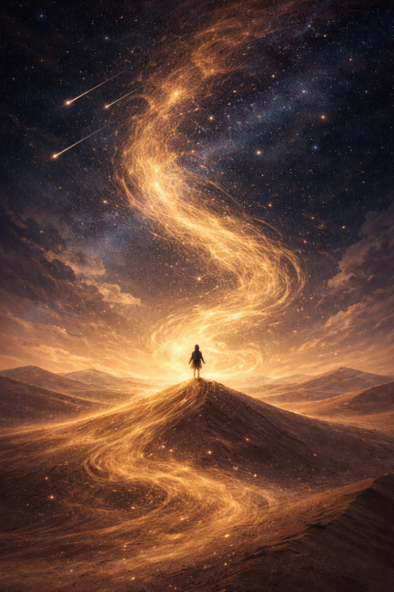 Je suis une poussière rebelle perdue dans le cosmos immense. Les bourrasques fugueuses fouettent la vie de tant d’épreuves. Elles me transportent avec elles sur les rives du consentement que je n’avais pas vues. Je pars et je reviens, je virevolte comme un grain de rien du tout, en gesticulation malhabile.